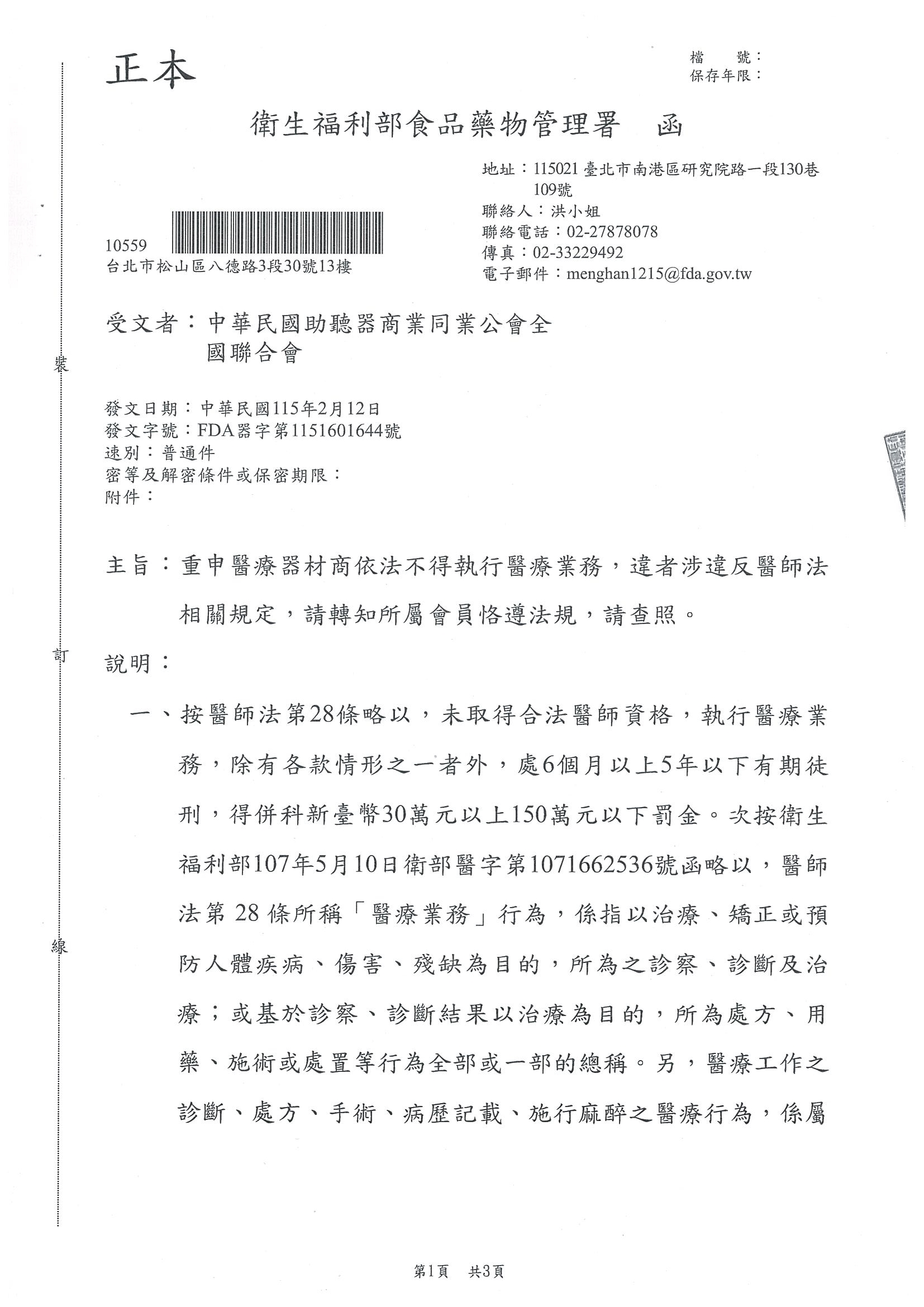 【食藥署】重申醫療器材商依法不得執行醫療業務