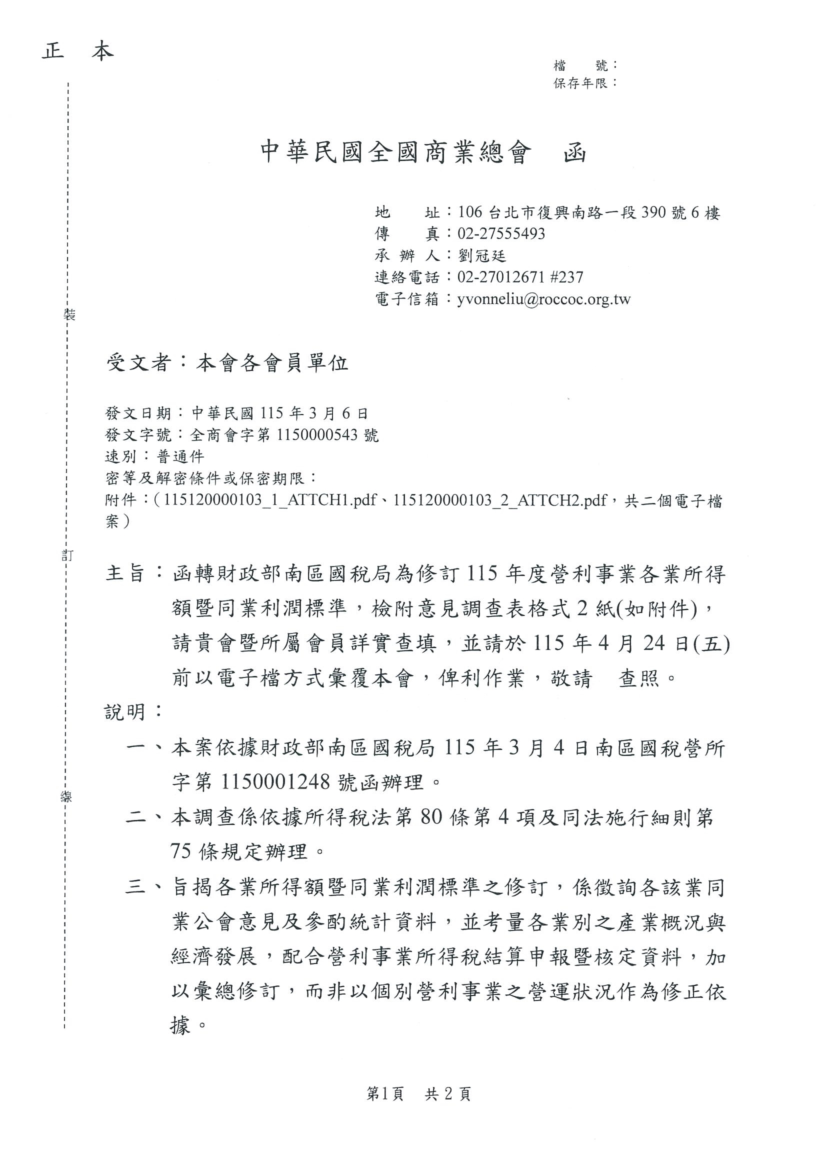 【全國商總】115年營利事業各業所得額暨同業利潤標準