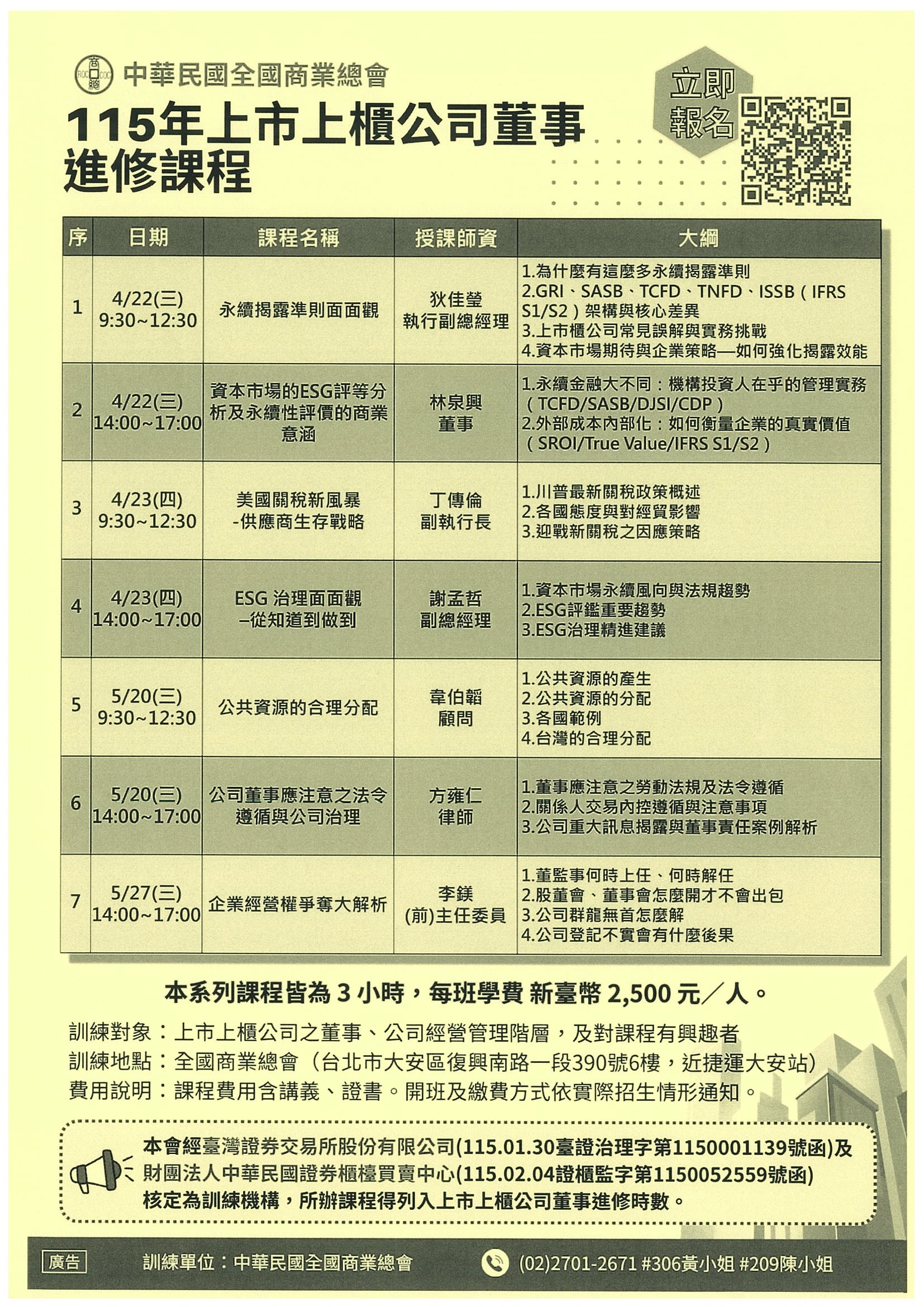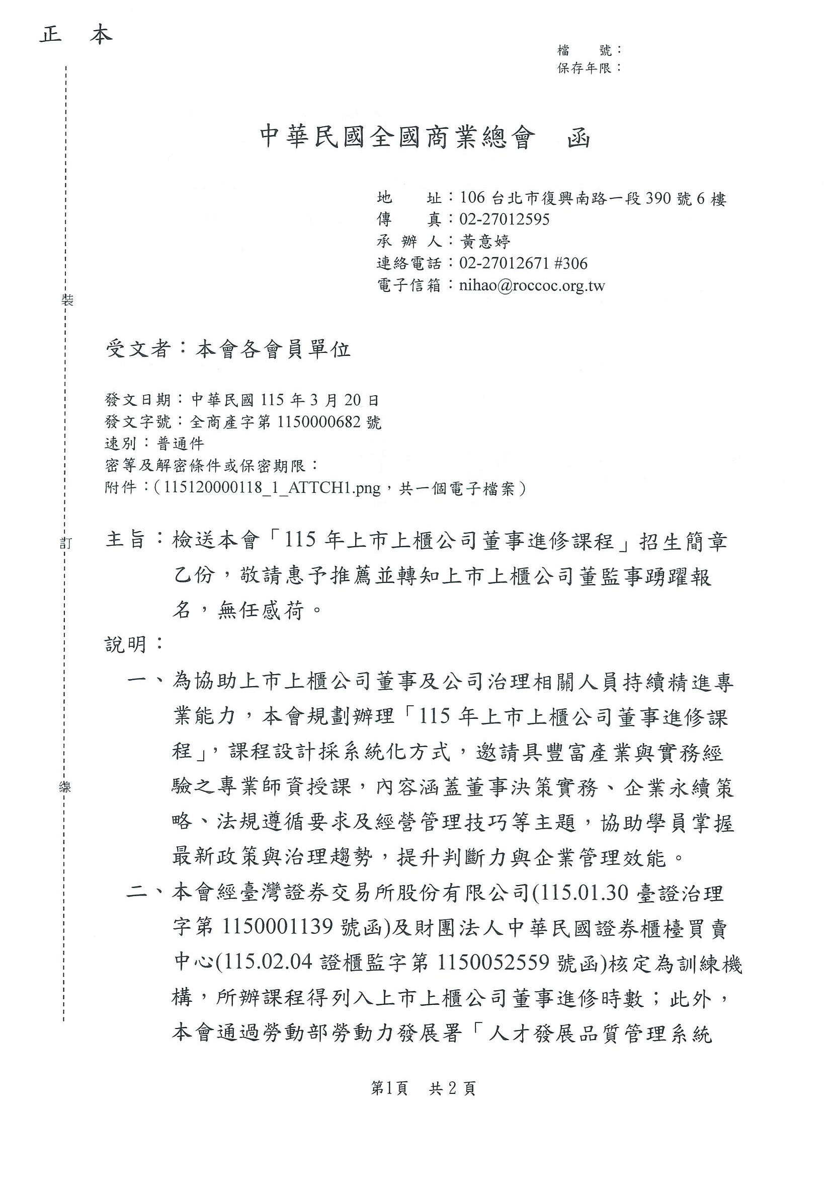 【全國商總】「115年上市上櫃公司董事進修課程」招生簡章