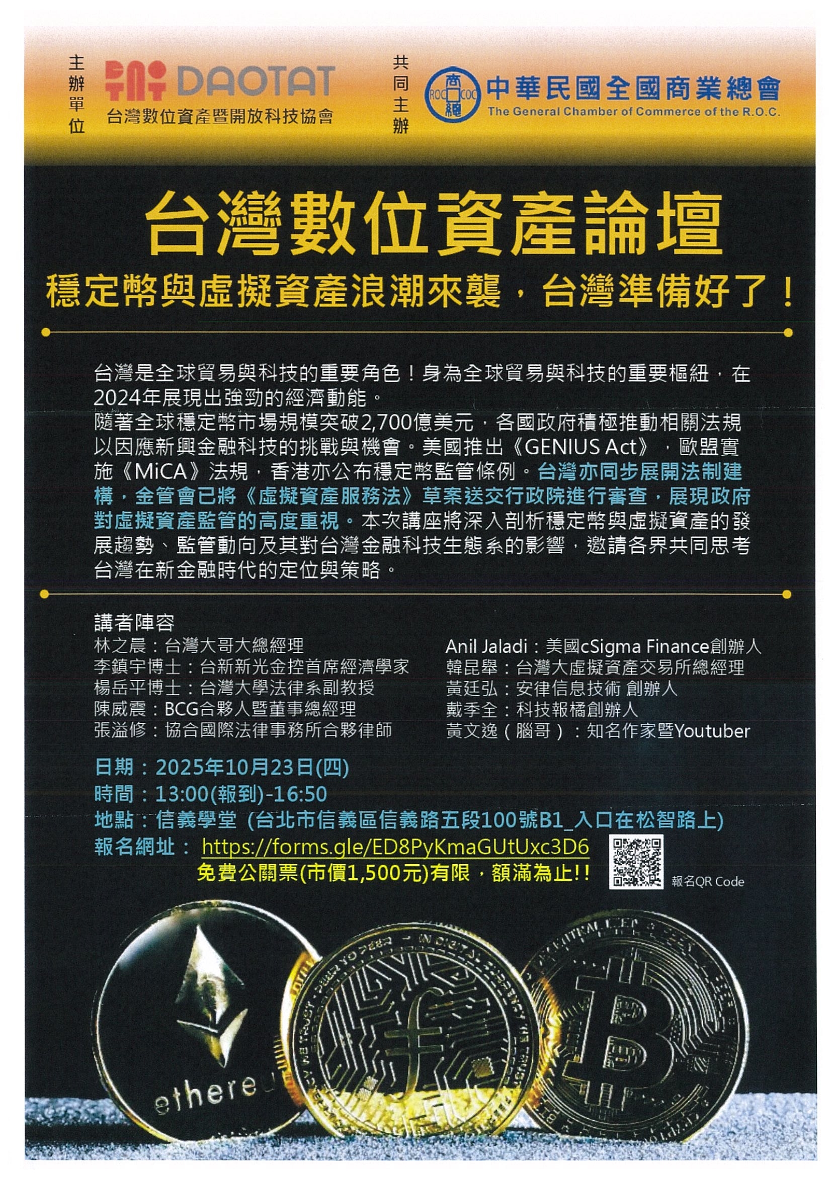 【全國商總】敬邀參加「台灣數位資產論壇 穩定幣與虛擬資產浪潮來襲,台灣準備好了!」
