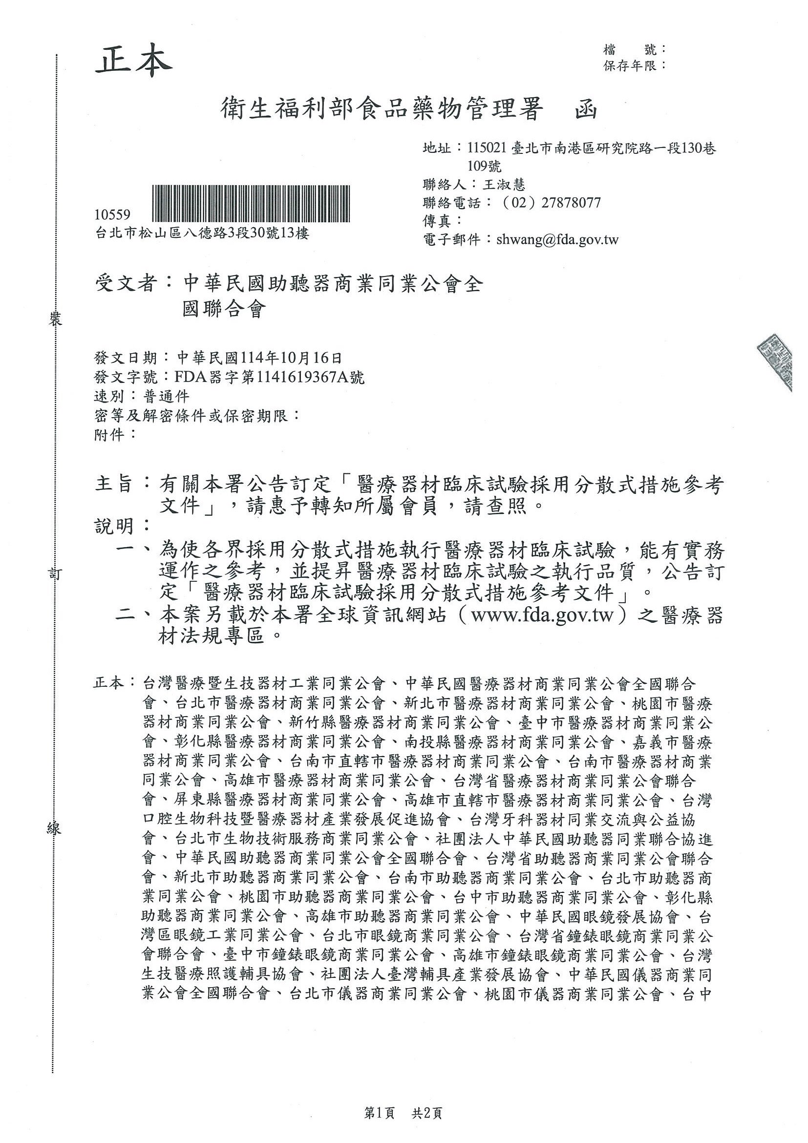 【食藥署】公告「醫療器材臨床試驗採用分散式措施參考文件」