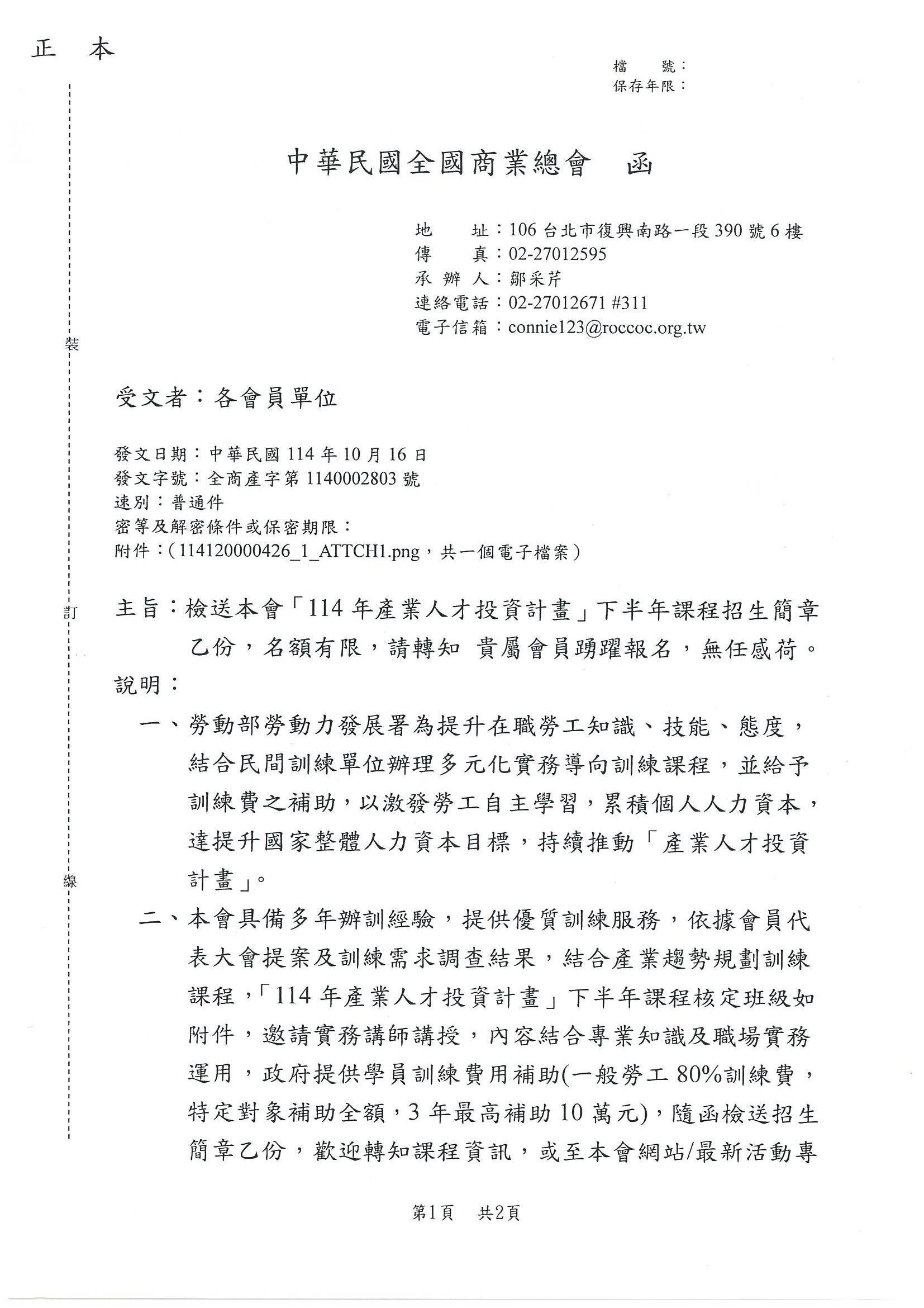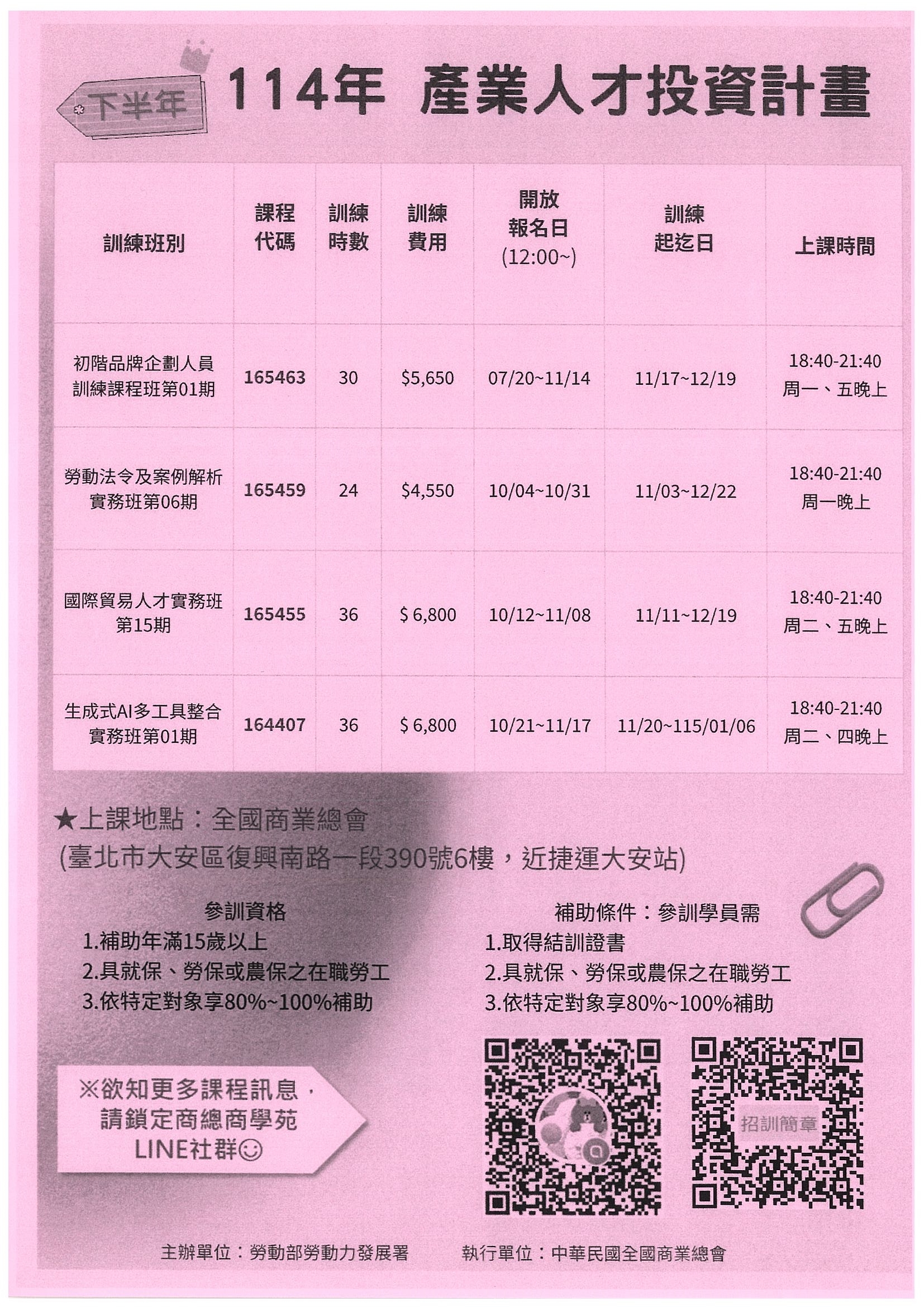 【全國商總】「114年產業人才投資計畫」招生簡章