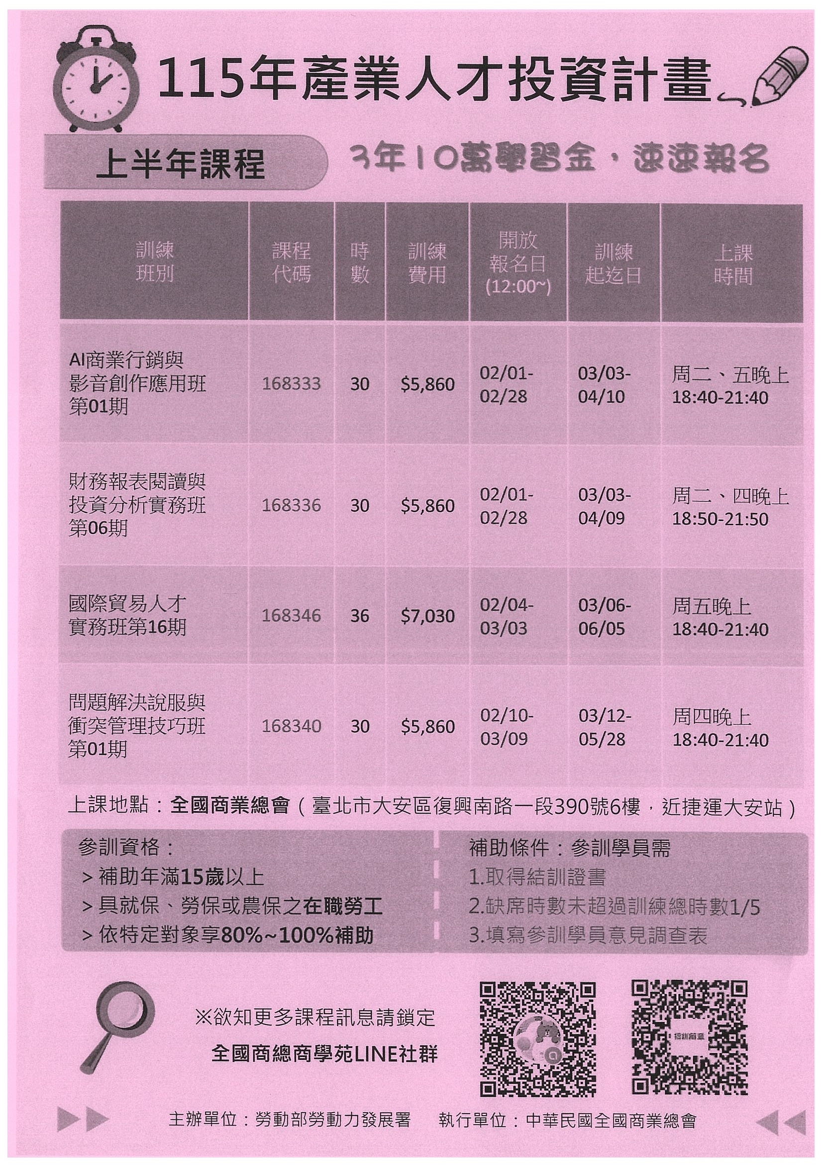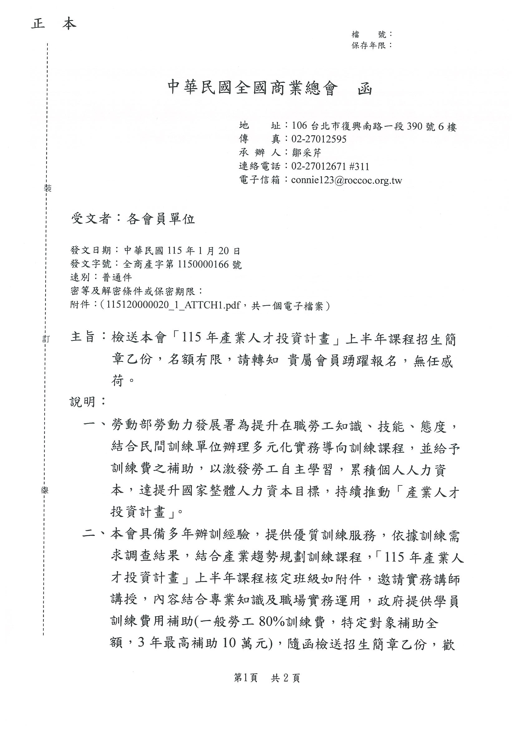 【全國商總】「115年產業人才投資計畫」上半年課程招生簡章