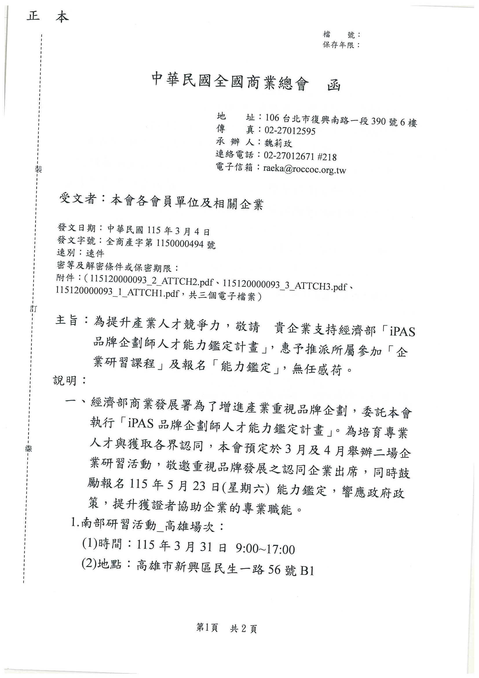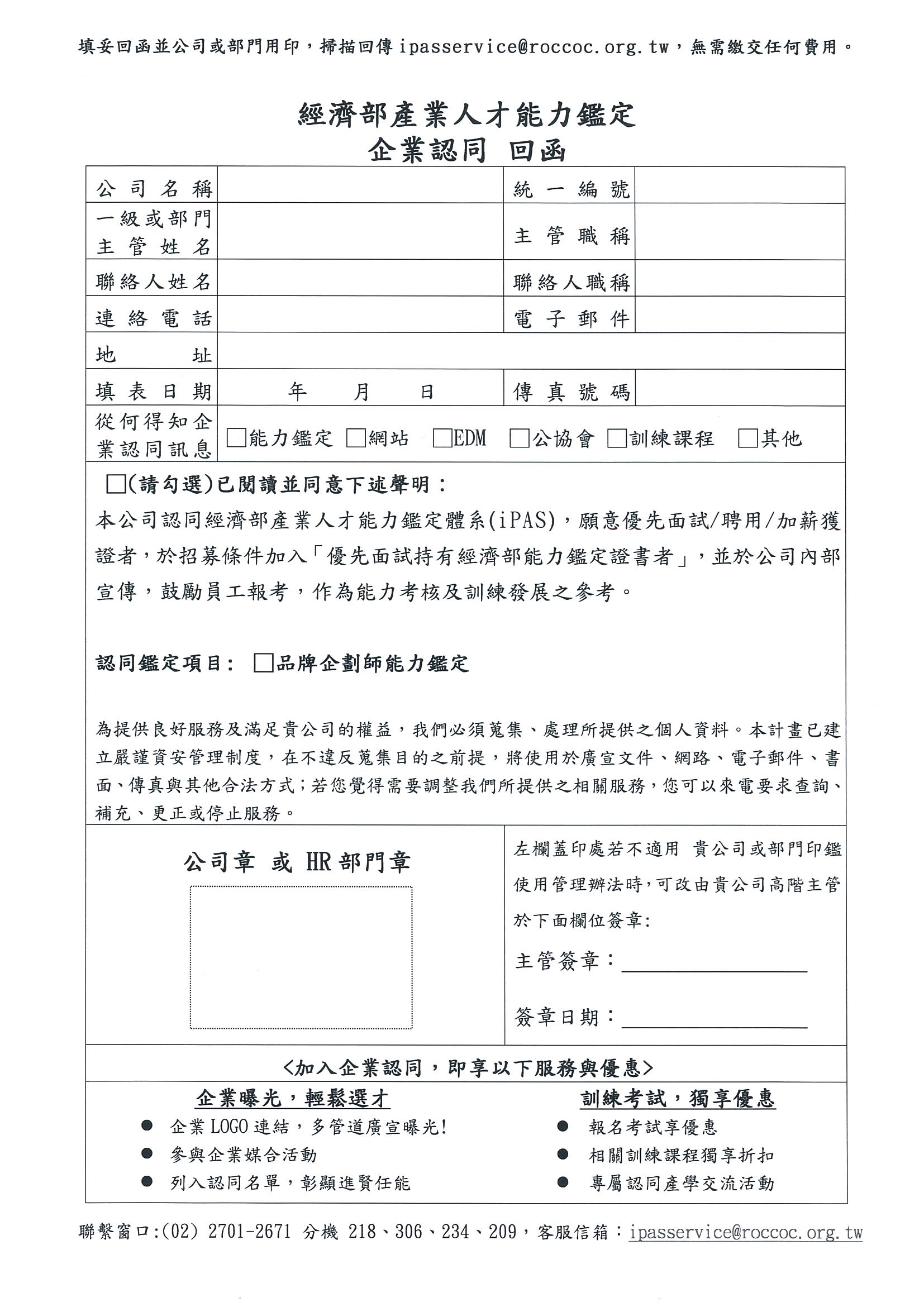 【全國商總】經濟部「iPAS品牌企畫師人才能力鑑定計畫」